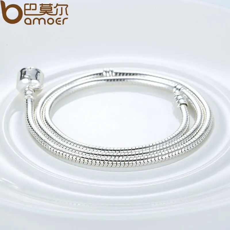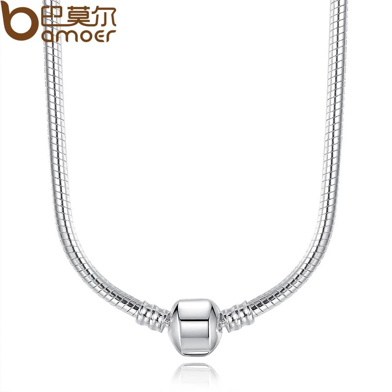 Best BAMOER 2 Style 45CM Length Silver Color Charm Necklace Snake Chain Silver 925 Original DIY Jewelry