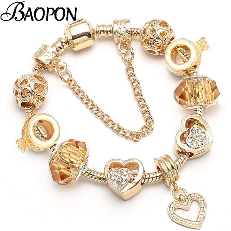 Best BAOPON Famous Brand Jewelry Charm Bracelet For Women With Love Heart Fine Bracelet Gold Bracelets P