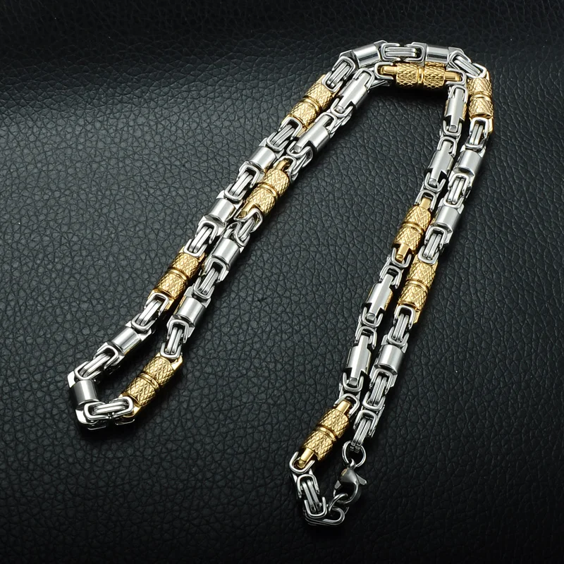 Best HIP Hop Two Tone Gold Color Titanium Stainless Steel 55CM 6MM Heavy Link Byzantine Chains Necklaces