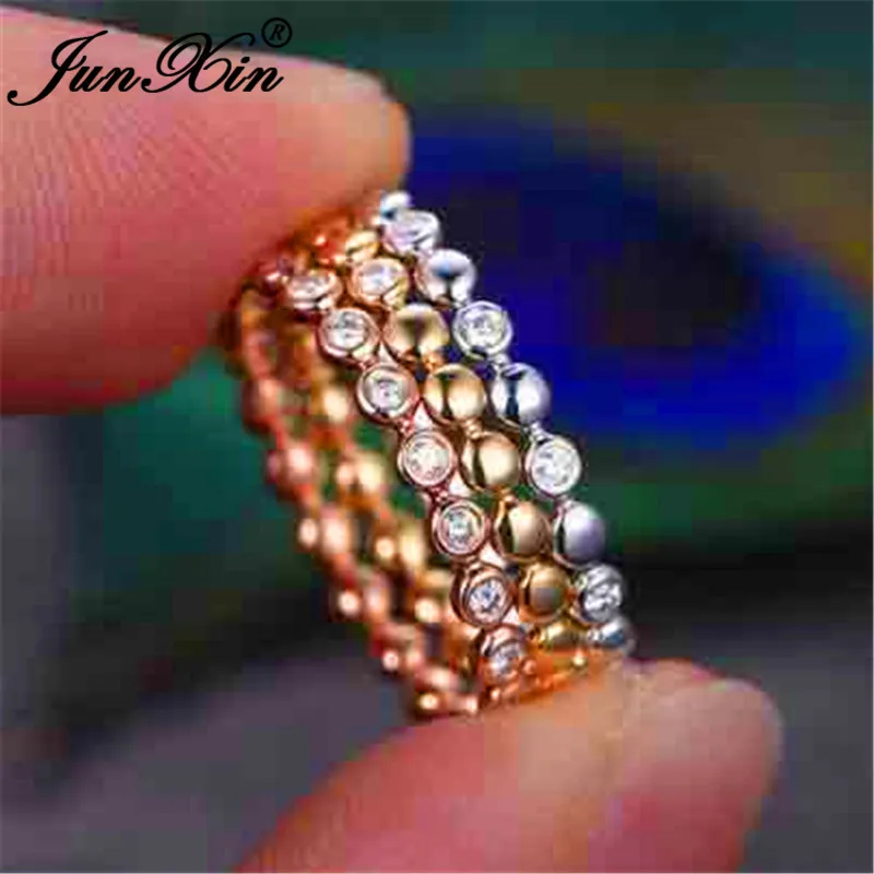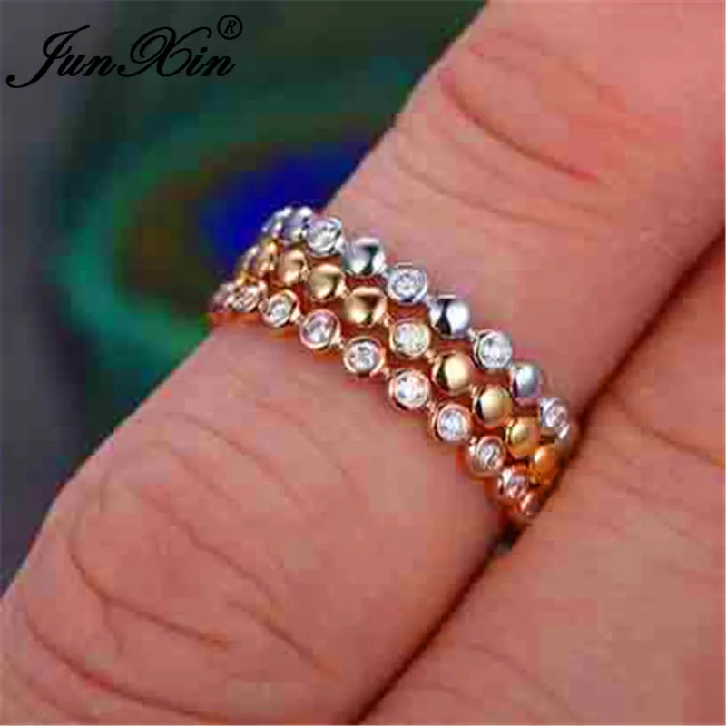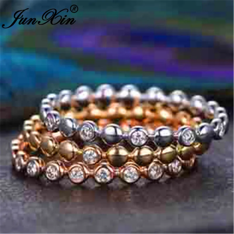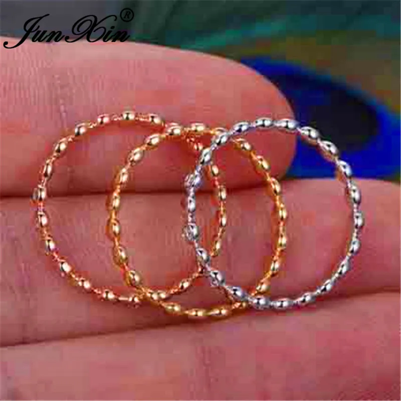 Promo JUNXIN Boho Female Crystal Stacking Thin Rings For Women 925 Silver Rose Gold Filled Minimalist Bri