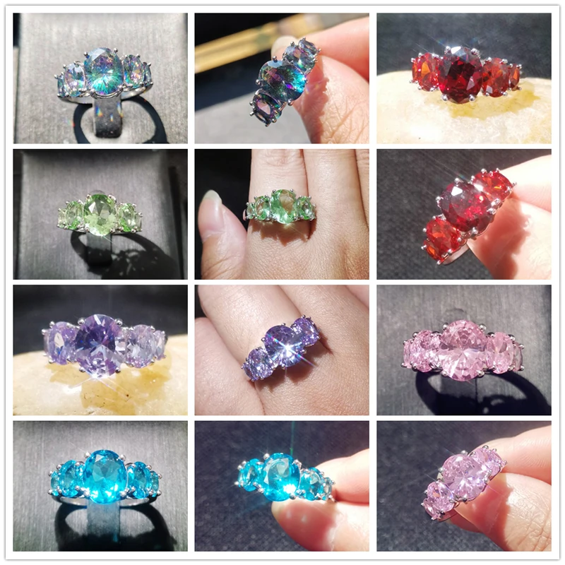 Best lingmei Wholesale Dazzling Oval Cut Blue Pink Zircon Silver Ring Size 6 7 8 9 10 11 12 13 For Women