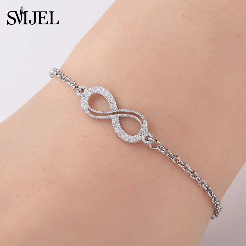 Best SMJEL Wedding Forever Infinity Pendant Bracelets Couple Stainless Steel Love Bracelet Bangle Endles