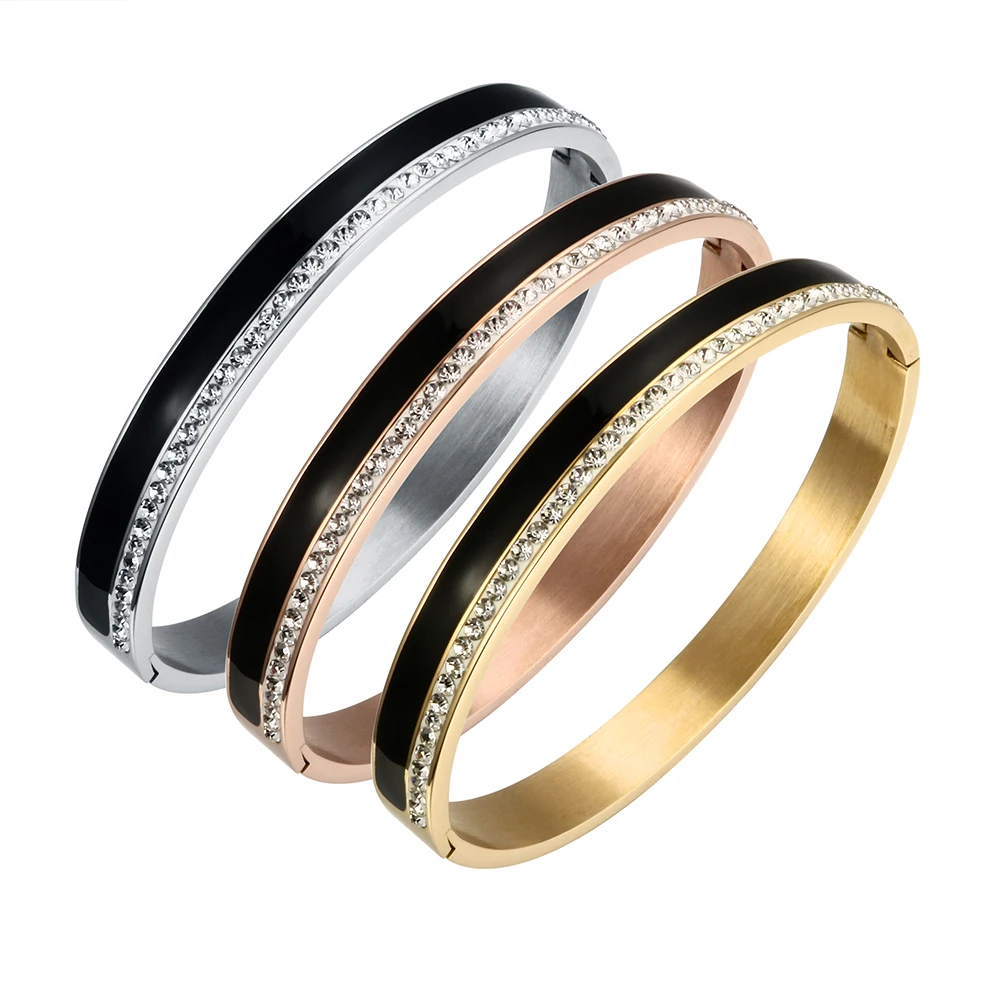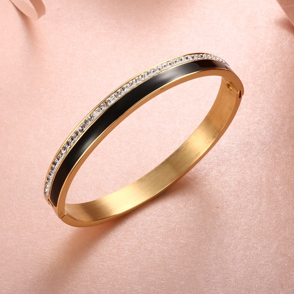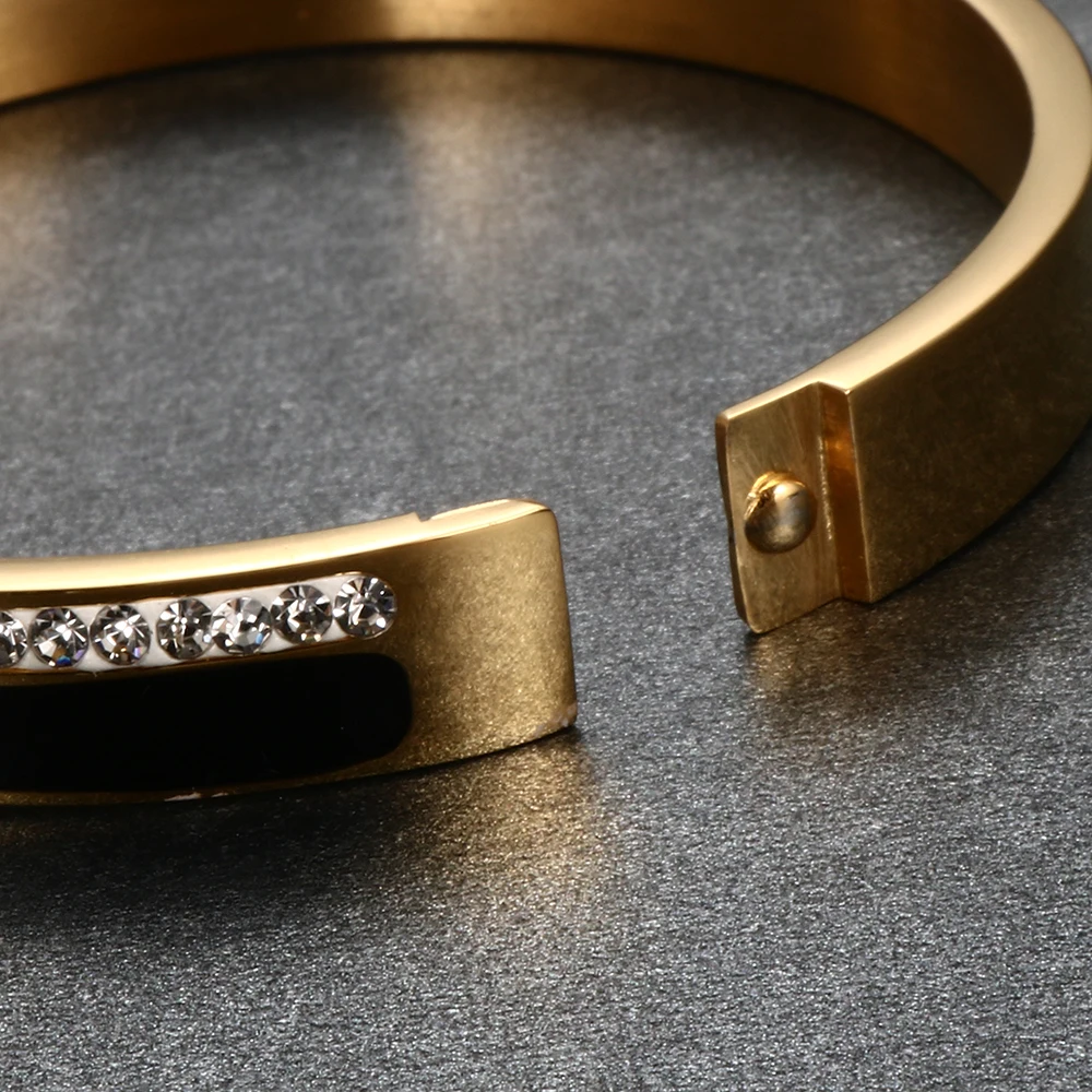 Best Stainless Steel Rose Gold Color Bracelets & Bangles Charm AAA Cubic Zirconia Female Open Cuff Brace