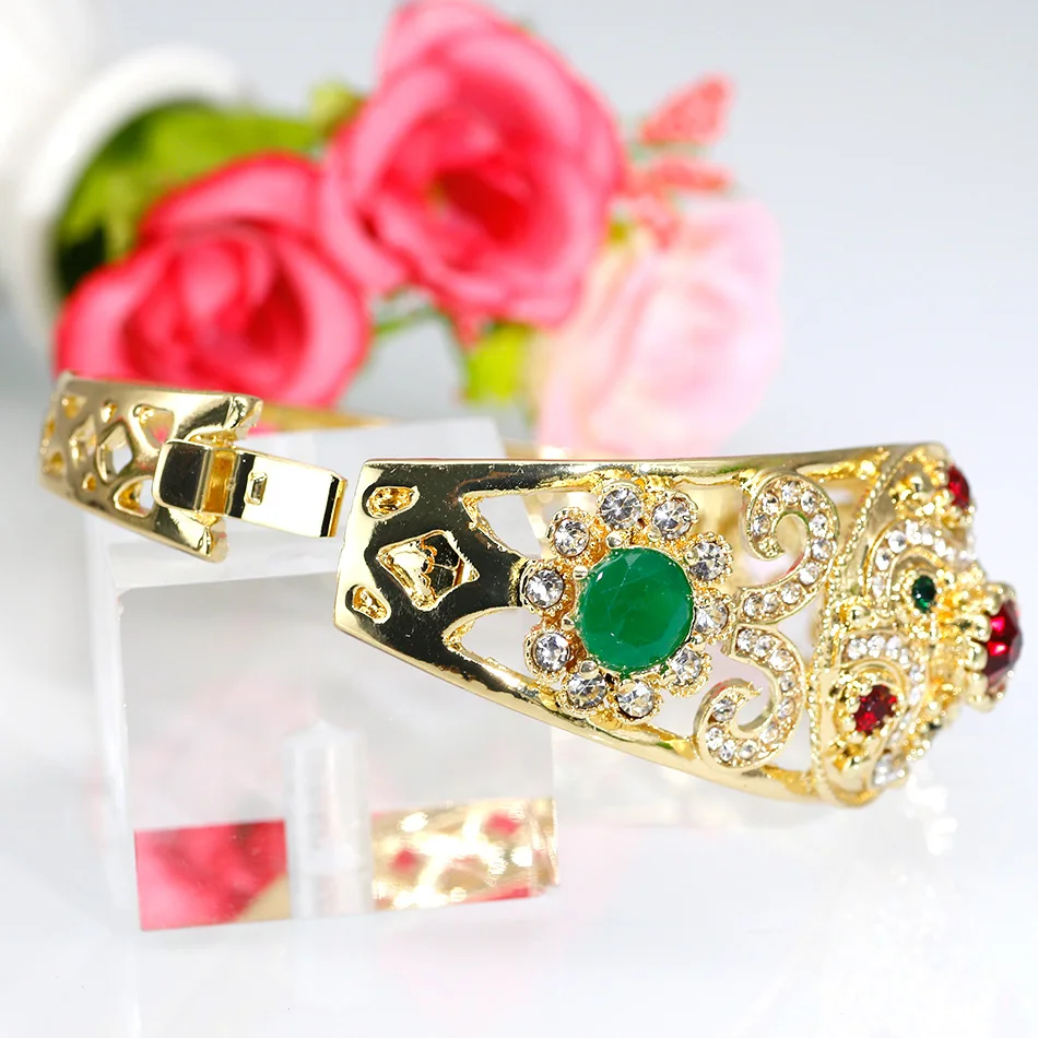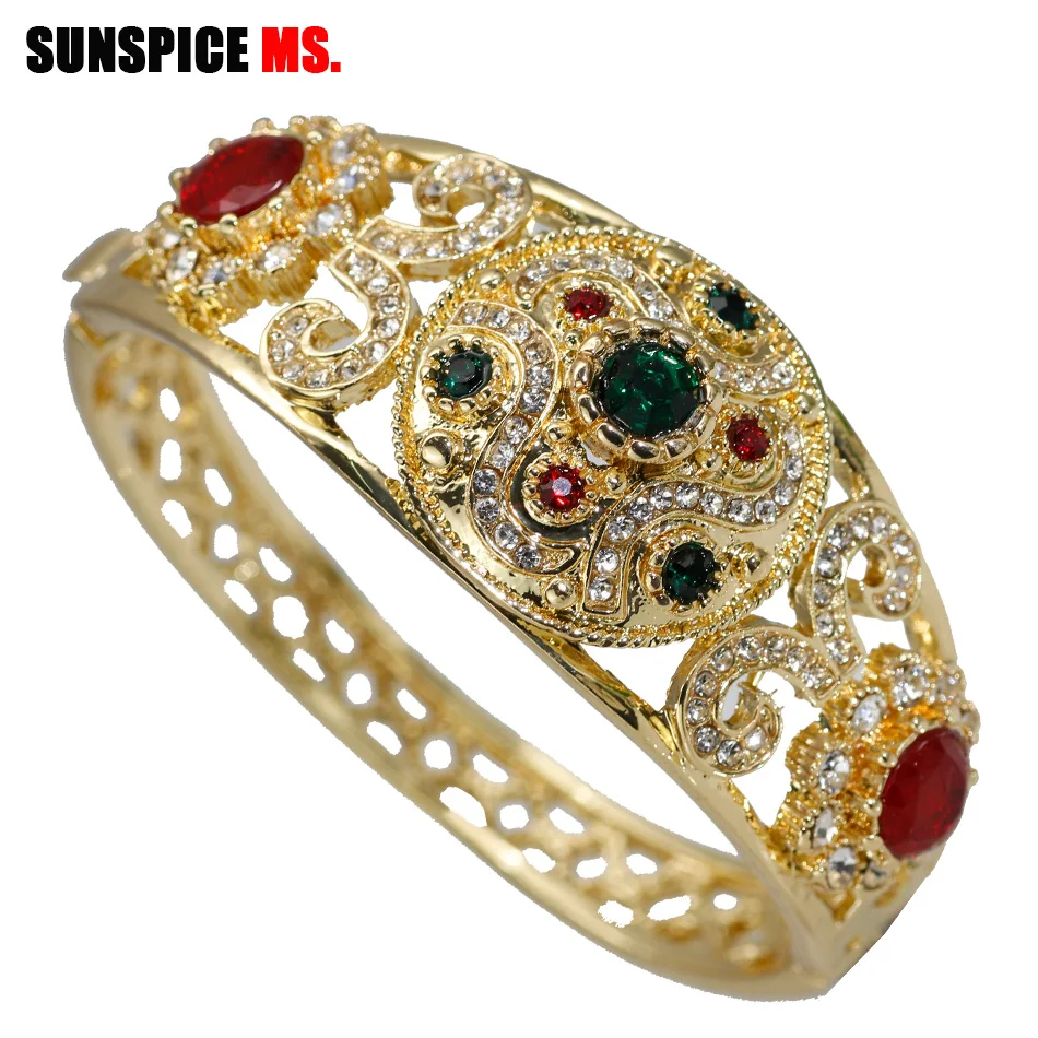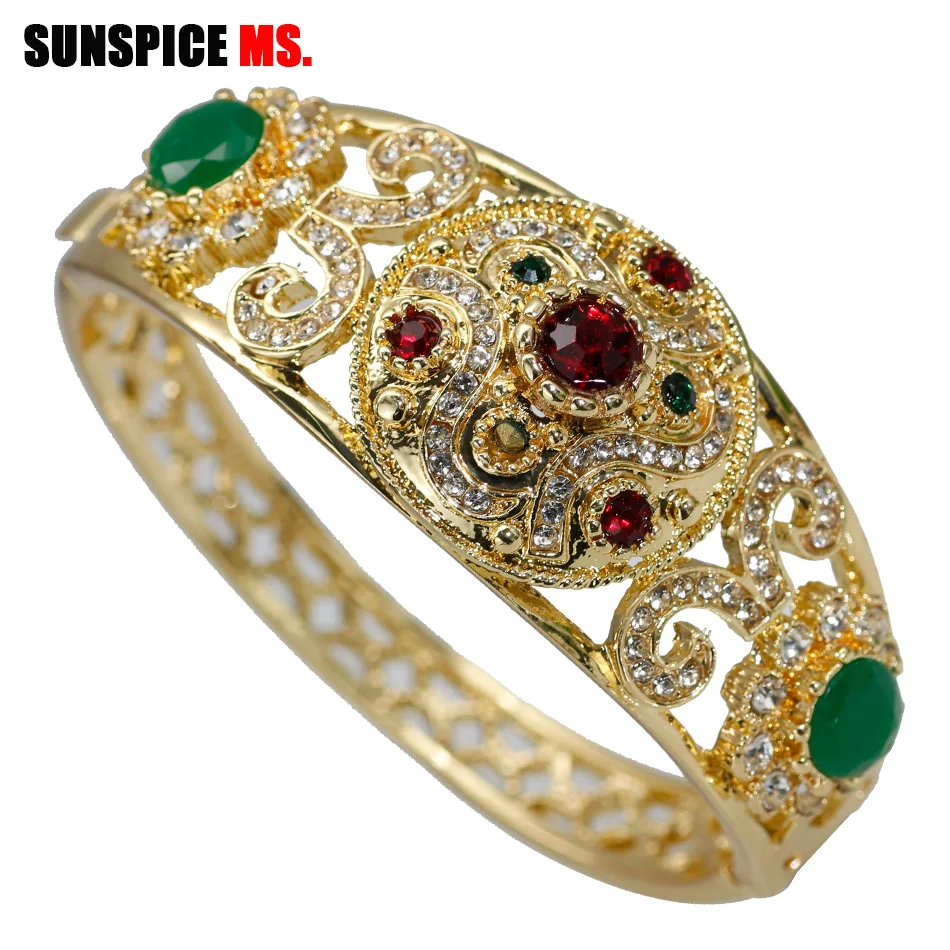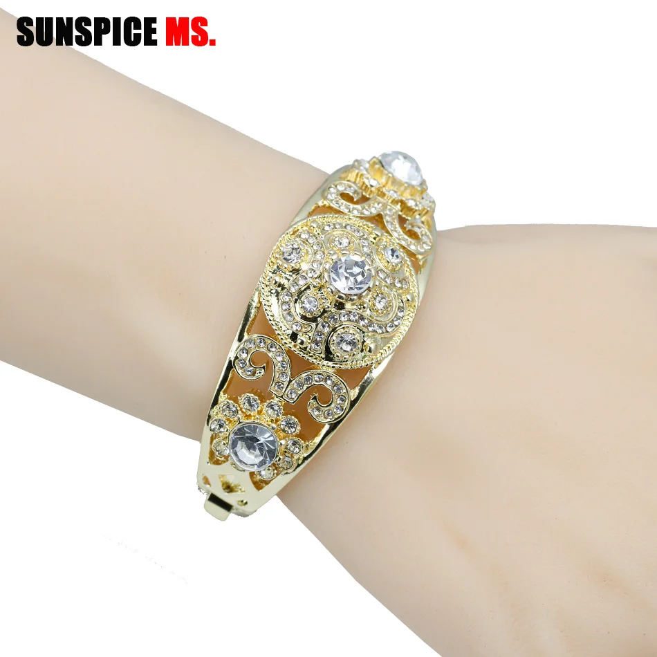 Best SUNSPICEMS Fashion Caucasus Ethnic Wedding Bangle For Women Gold Color Hollow Cuff Bracelet Full Cr