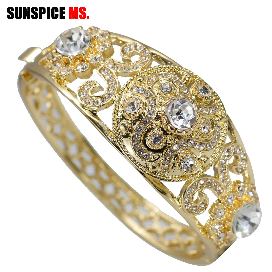 New SUNSPICEMS Fashion Caucasus Ethnic Wedding Bangle For Women Gold Color Hollow Cuff Bracelet Full Cr