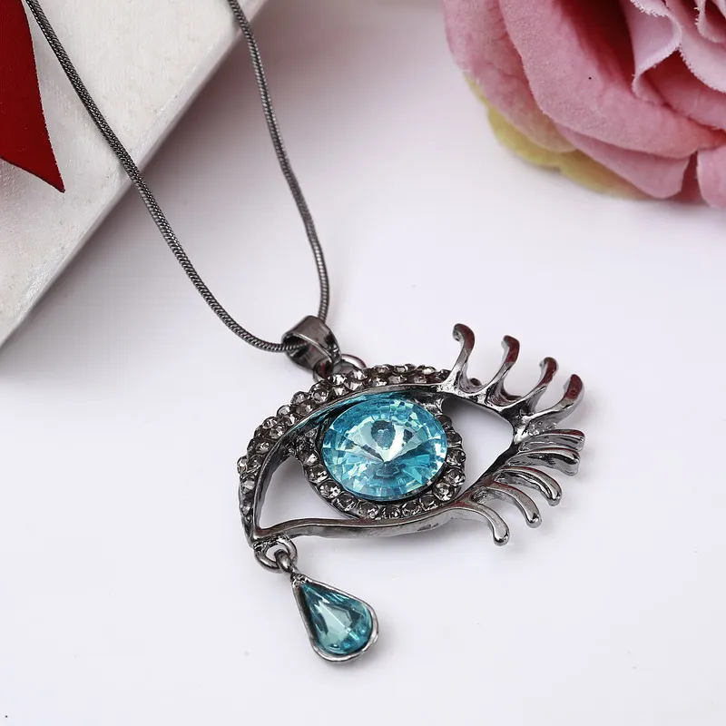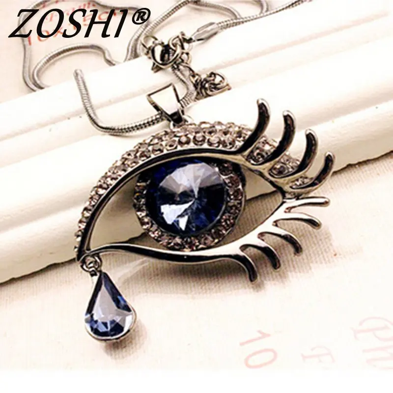 Best ZOSHI Fashion Choker pendants Necklace For Women Gems Blue Eyes Eyelash Tear Women Statement Neckla