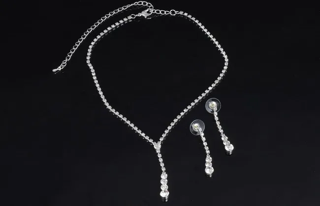 Buy Crystal Tennis Drop Necklace Sets 14"-17" Silver Bridal Bridesmaid wedding engagement Jewelry sets