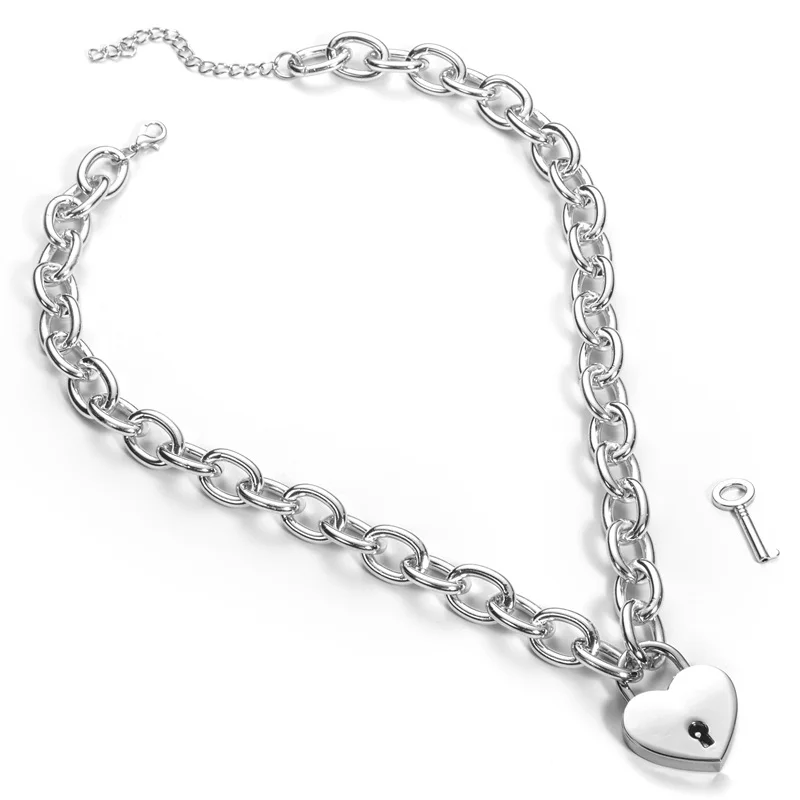 Buy Key to My heart lock necklace women metal padlock chain Necklaces neck collar pastel goth jewelry v