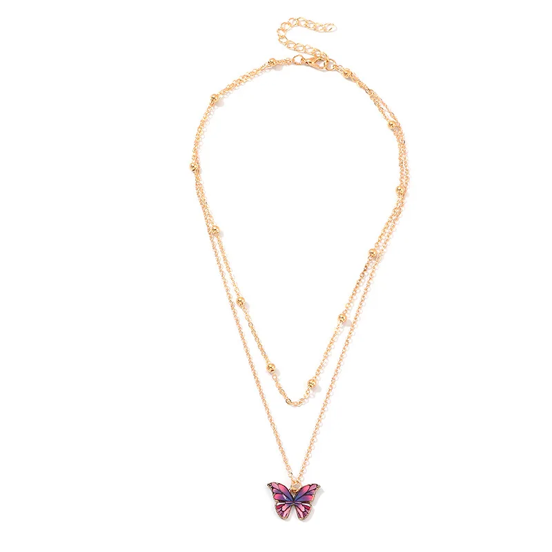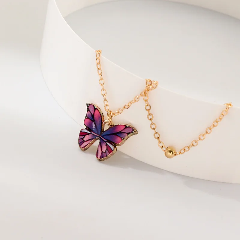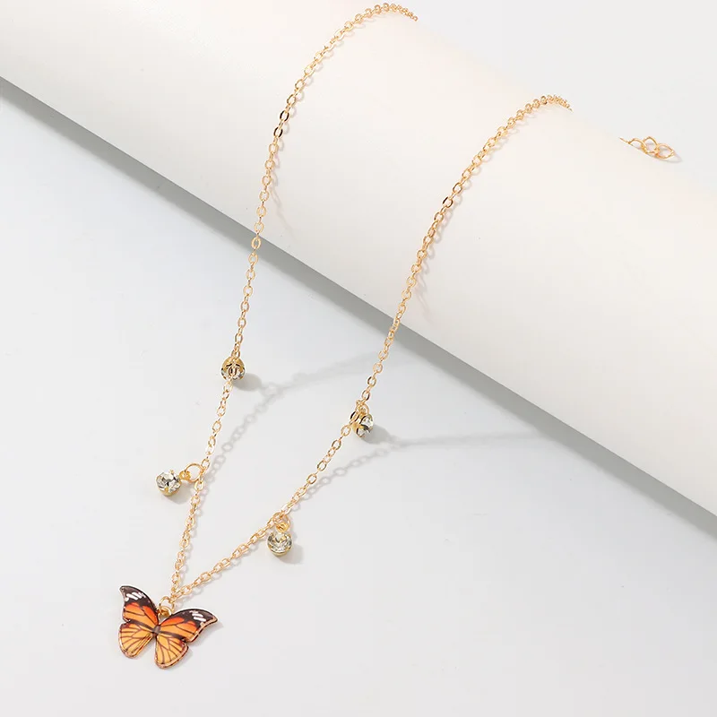 Best Luxury European Women Butterfly Pendant Necklaces Female Colorful Rhinestone Gold Chain Simple Chok