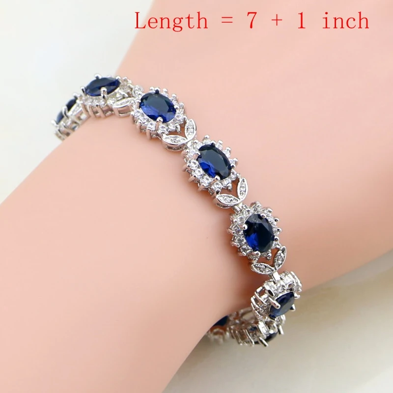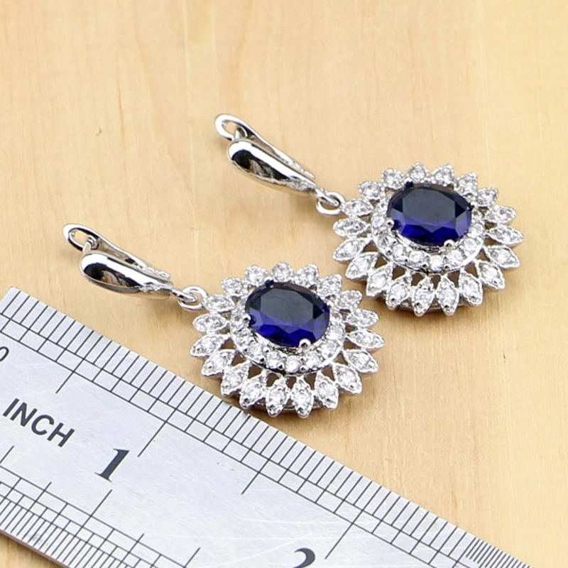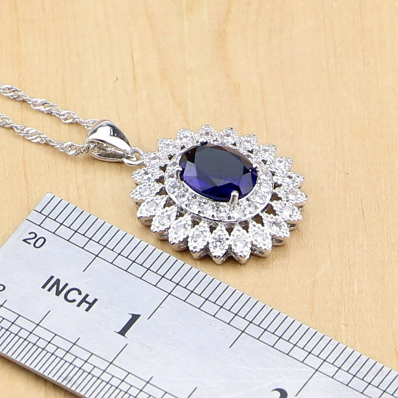 Buy Natural Oval Blue Zircon White CZ 925 Silver Jewelry Sets For Women Party Earrings/Pendant/Necklace