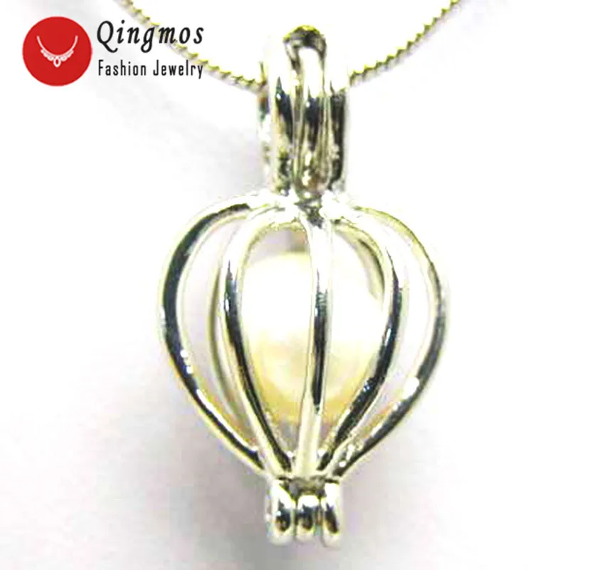 Promo Qingmos Wish Pearl One Box Heart Pendant Necklace for Women with Natural Oyster Love Pearl Necklace