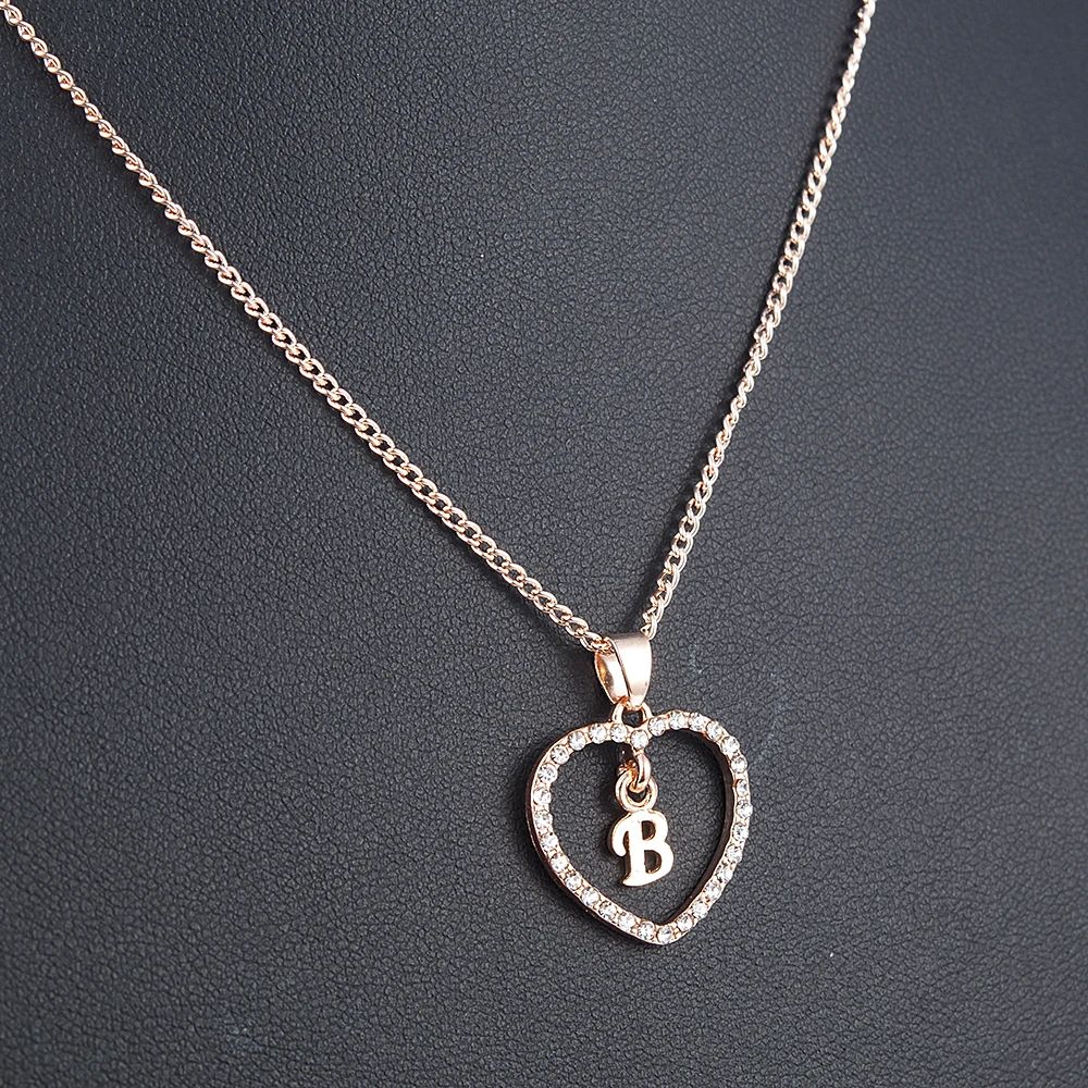 Buy Romantic Love Pendant Necklace For Girls 2019 Women Rhinestone Initial Letter Necklace Alphabet Gol