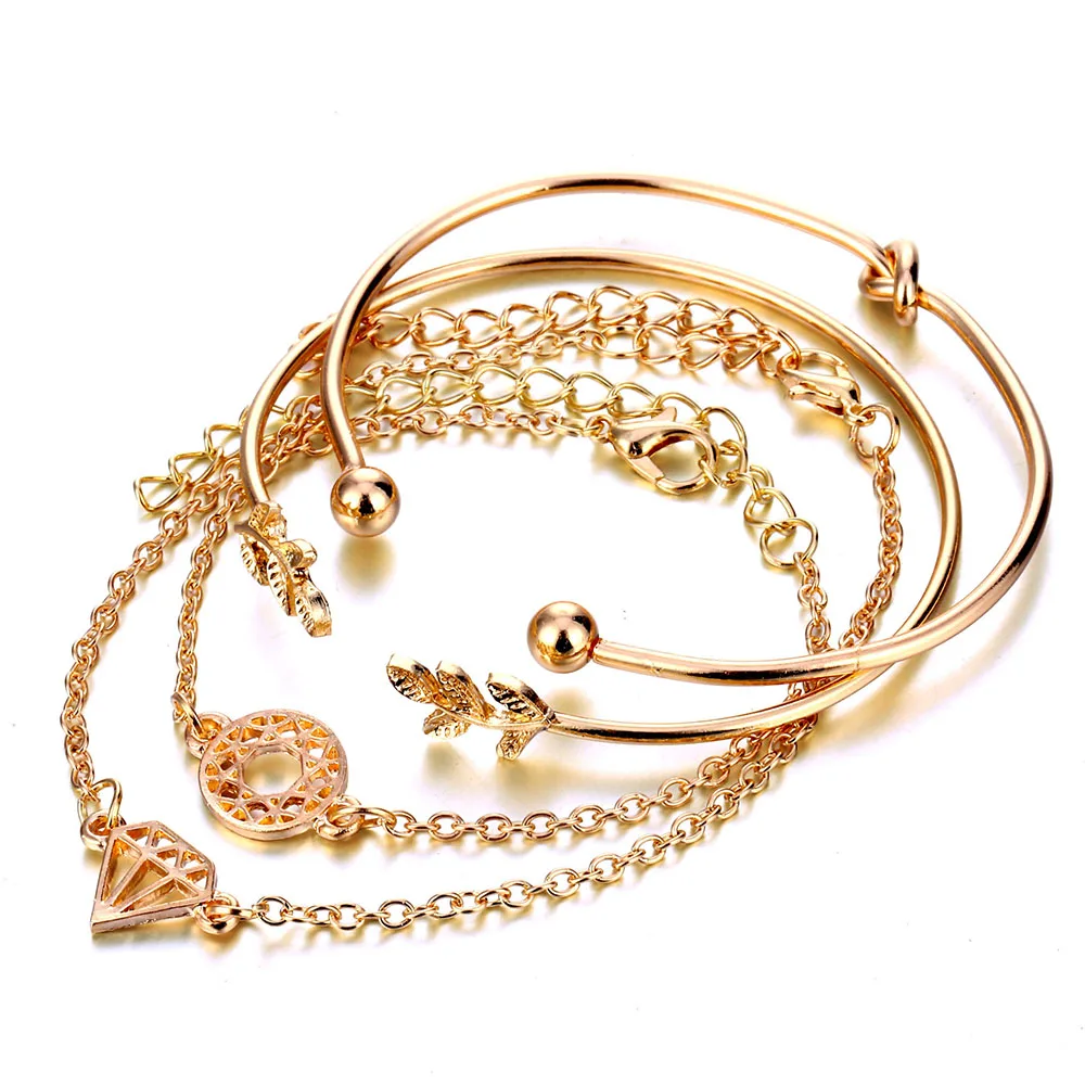 Best FAMSHIN 4 Pcs/Set Fashion Bohemia Leaf Knot Hand Cuff Link Chain Charm Bracelet Bangle for Women Go