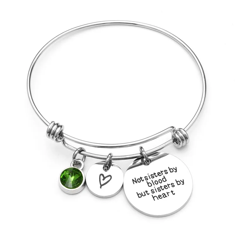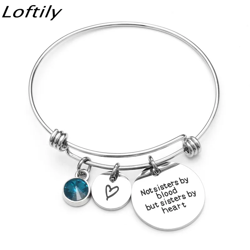 Promo Not Sister by blood But sisters by heart Women Adjustable Heart Round Bracelet Letters Stainless St