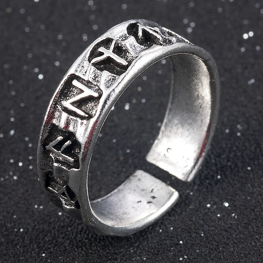 New Punk Fashion Style Antique Retro Male Jewelry Viking Ring Female Black Amulet Vintage Norse Rune Ri