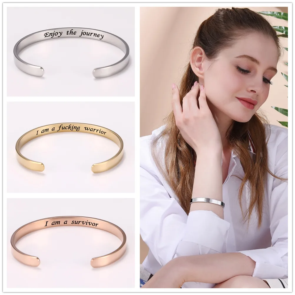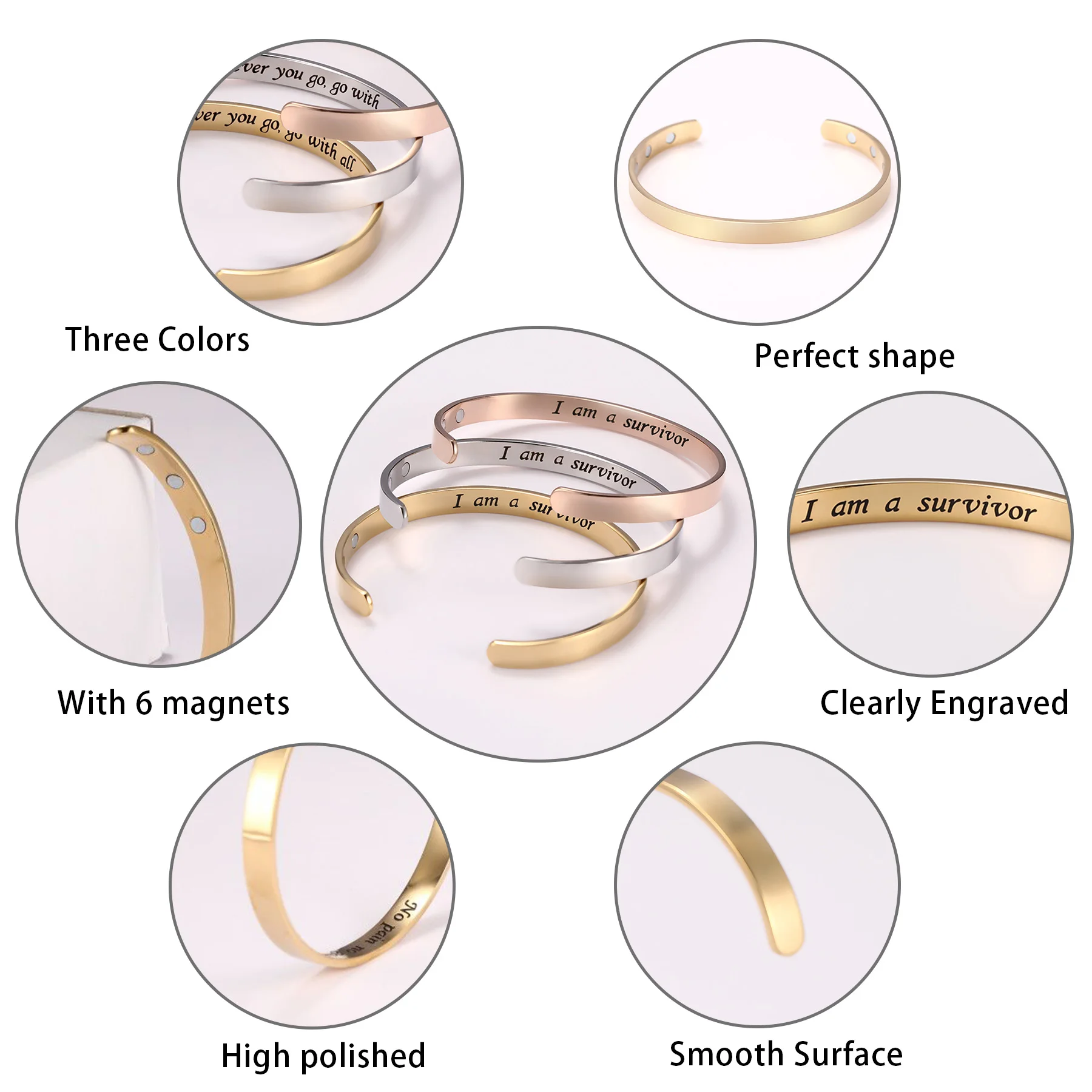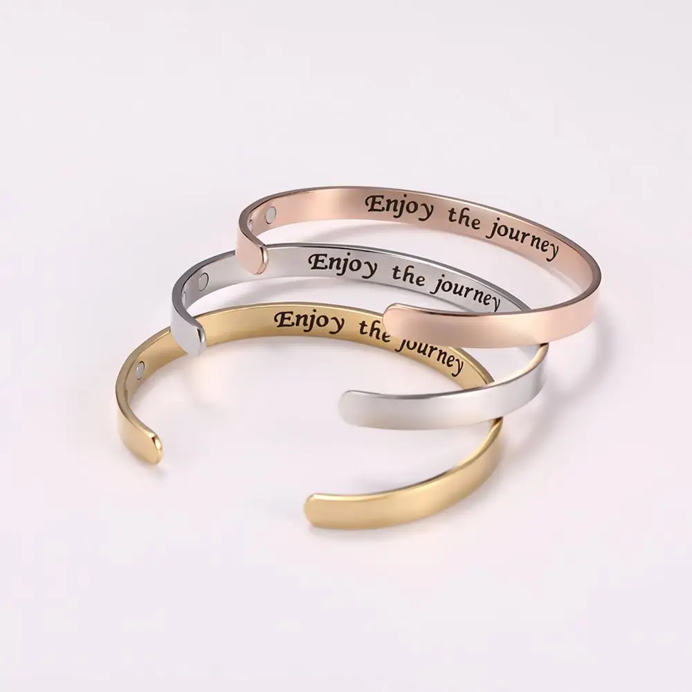 Buy Skyrim Inspirational Words Magnetic Couple Bangles Stainless Steel Rose Gold Energy Balance Cuff Br