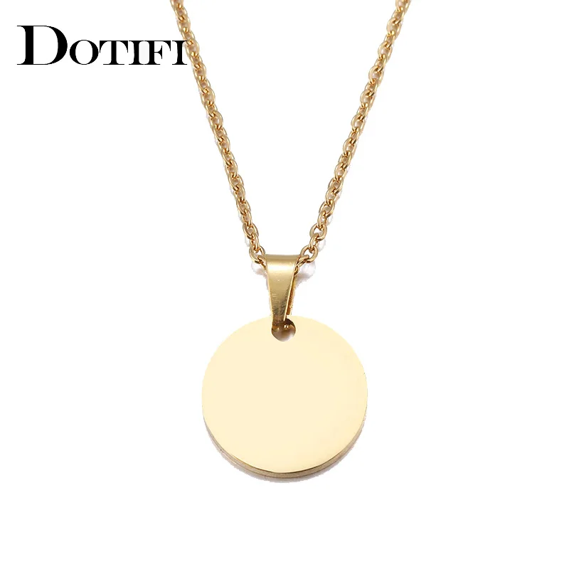 Promo DOTIFI Stainless Steel Necklace Round Circle Pendant Necklace For Women Elegant Clavicle Necklace W