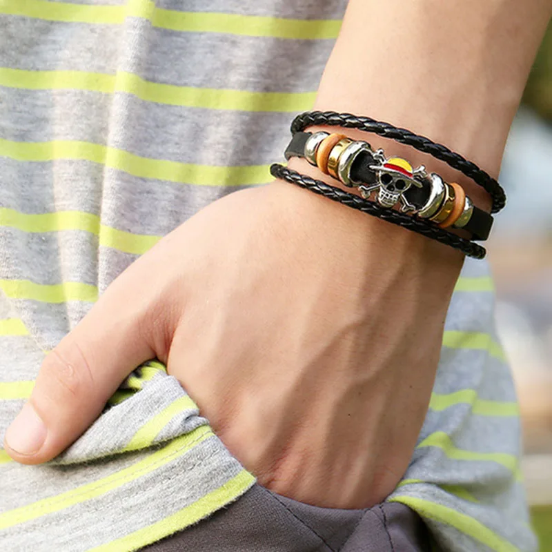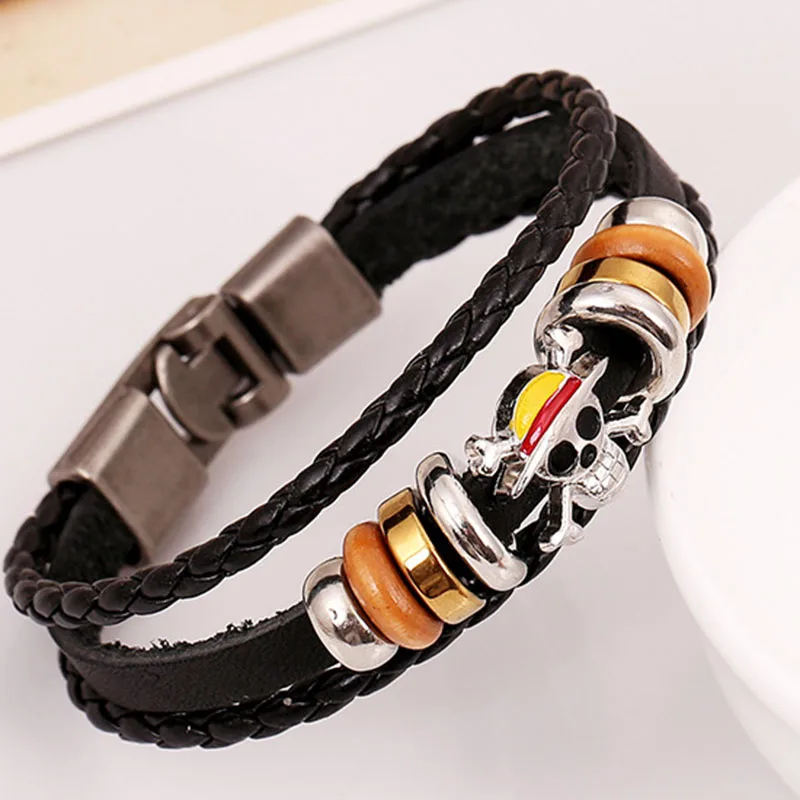 New Gothic Anime one piece Leather weave Bracelet handmade Luffy keyring Charm punk vintage Bangles pea