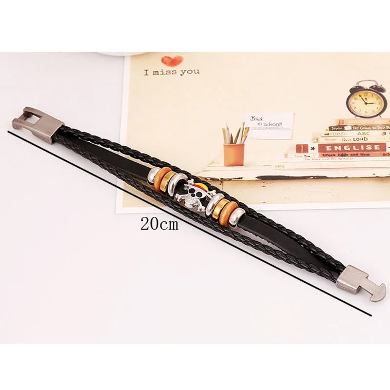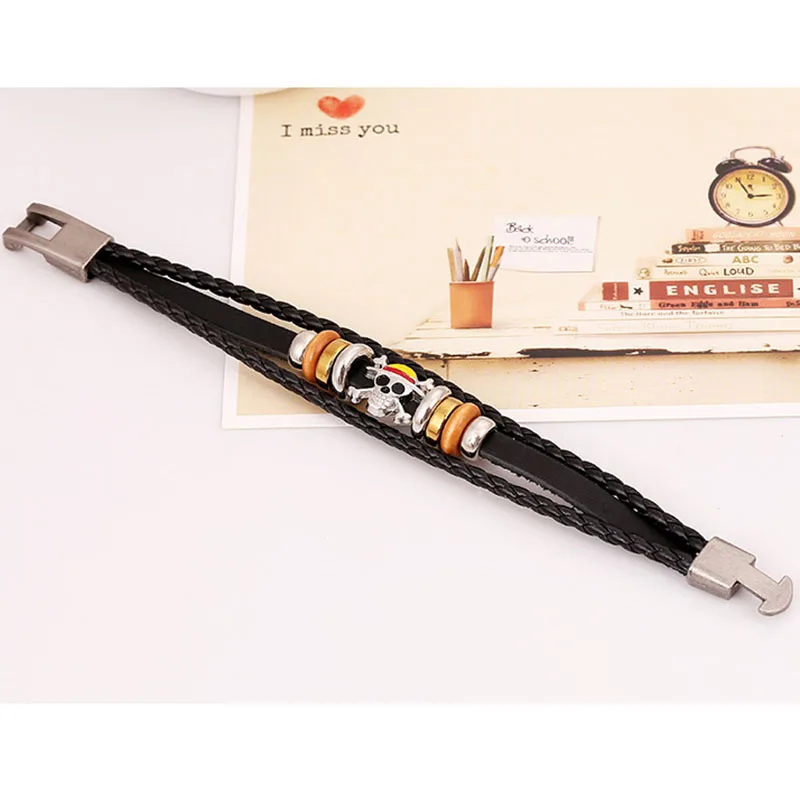 Promo Gothic Anime one piece Leather weave Bracelet handmade Luffy keyring Charm punk vintage Bangles pea