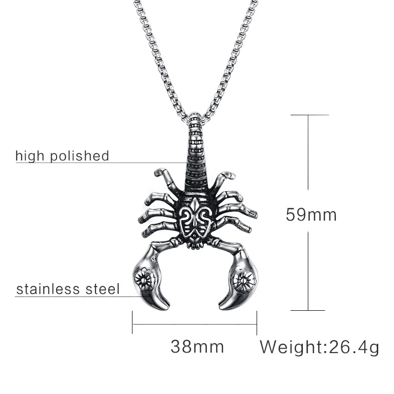 Promo Impressive Men Tribal Scorpion King VERY VENOM Pendant Necklace Stainless Steel in Silver-color Bla