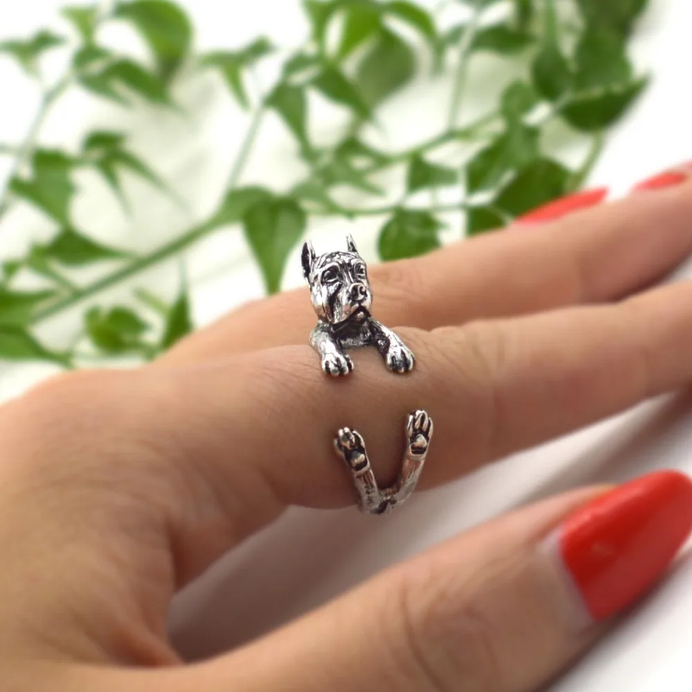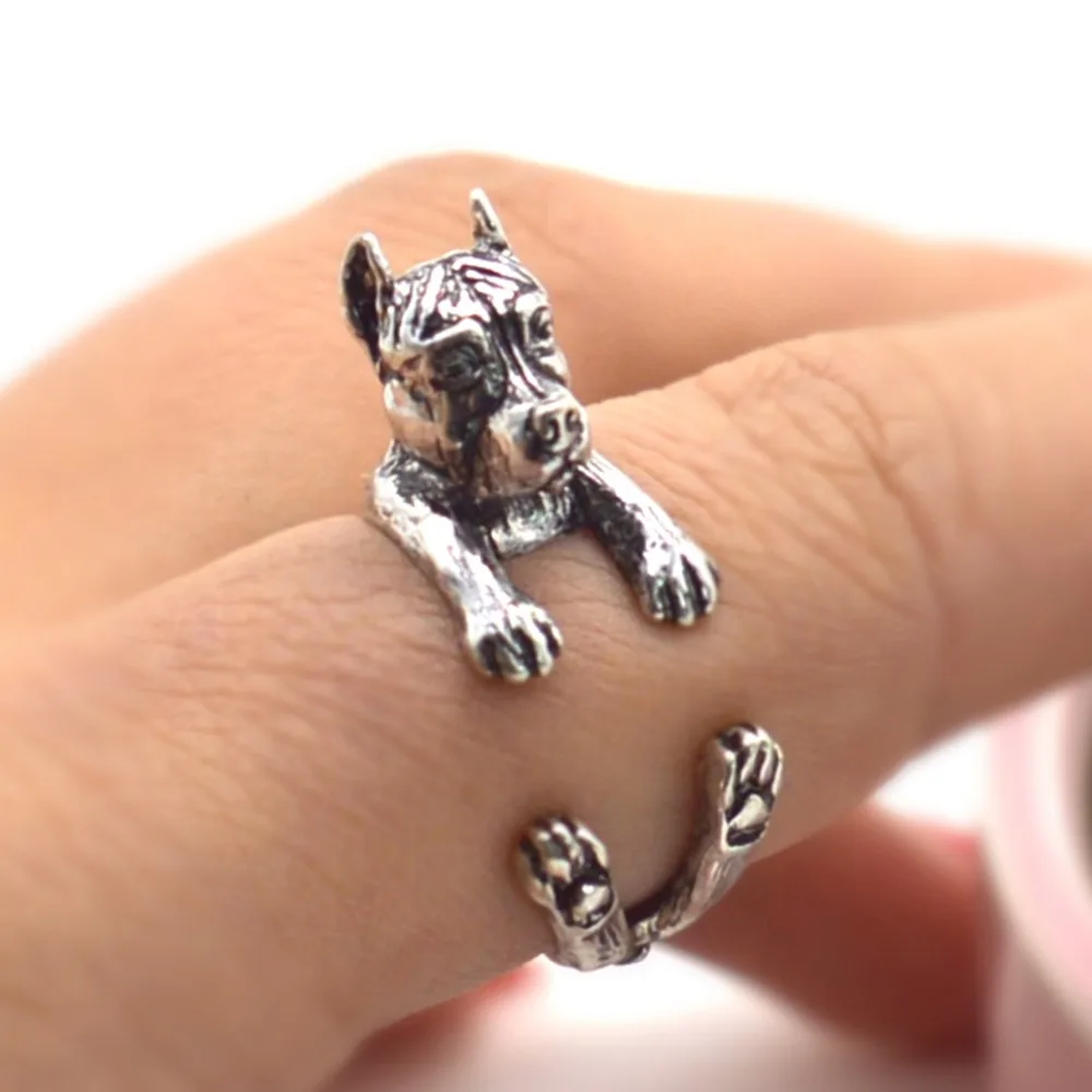 Best QIAMNI Pet Lovers Gift Handmade Boho Chic PitBull Dog Animal Rings for Women Men Unique Adjustable