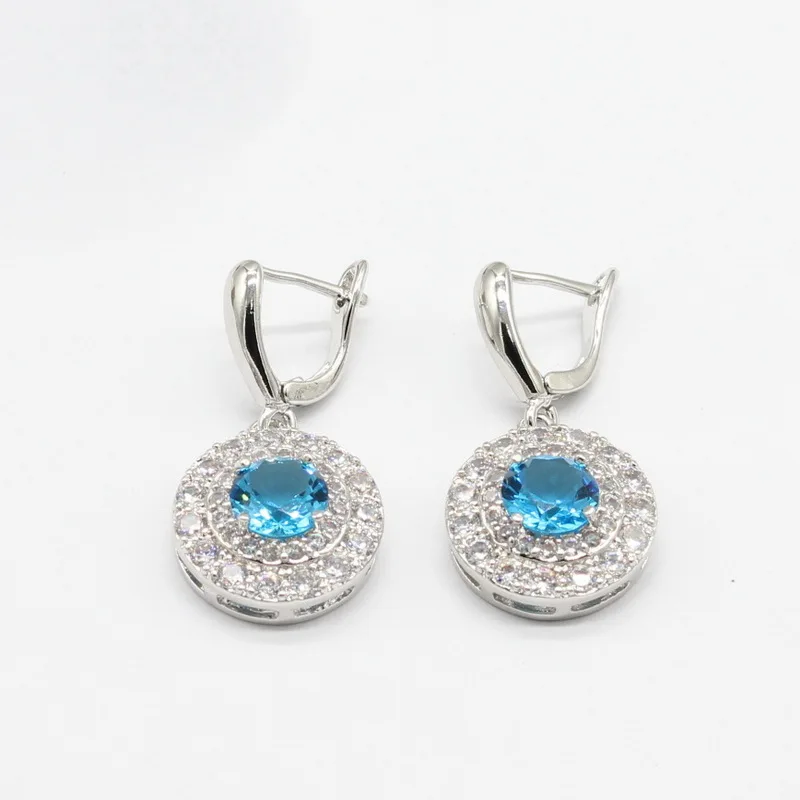 Promo Round Light Blue White CZ 925 Silver Jewelry Sets For Women Bracelet Earrings Necklace Pendant Ring