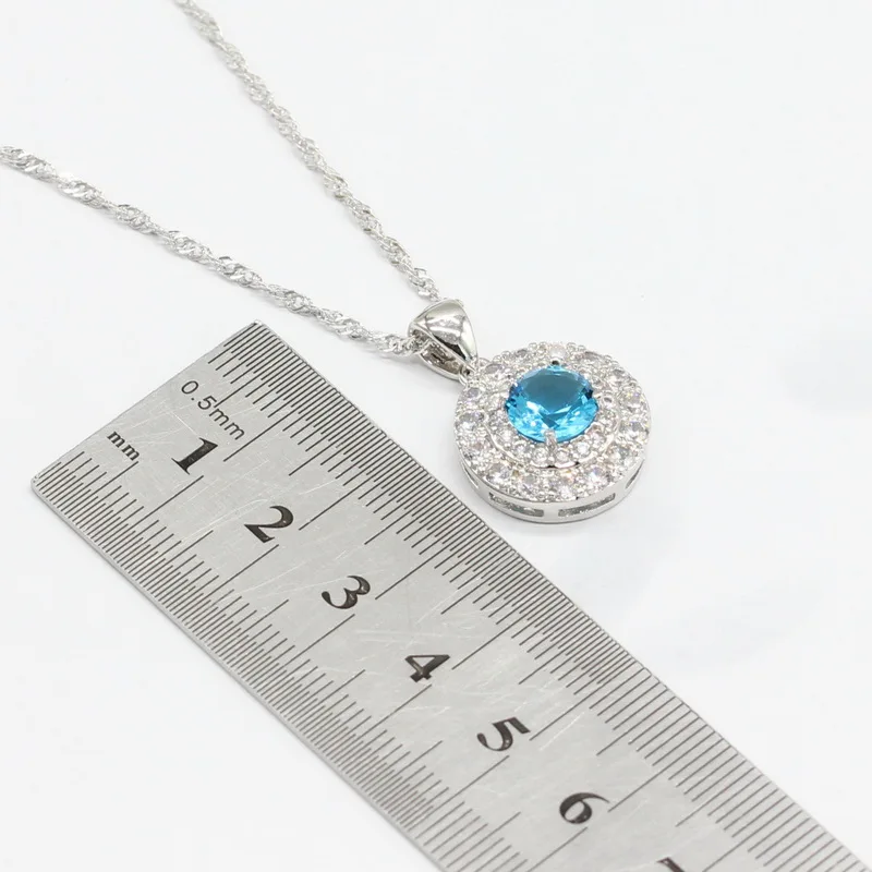 New Round Light Blue White CZ 925 Silver Jewelry Sets For Women Bracelet Earrings Necklace Pendant Ring