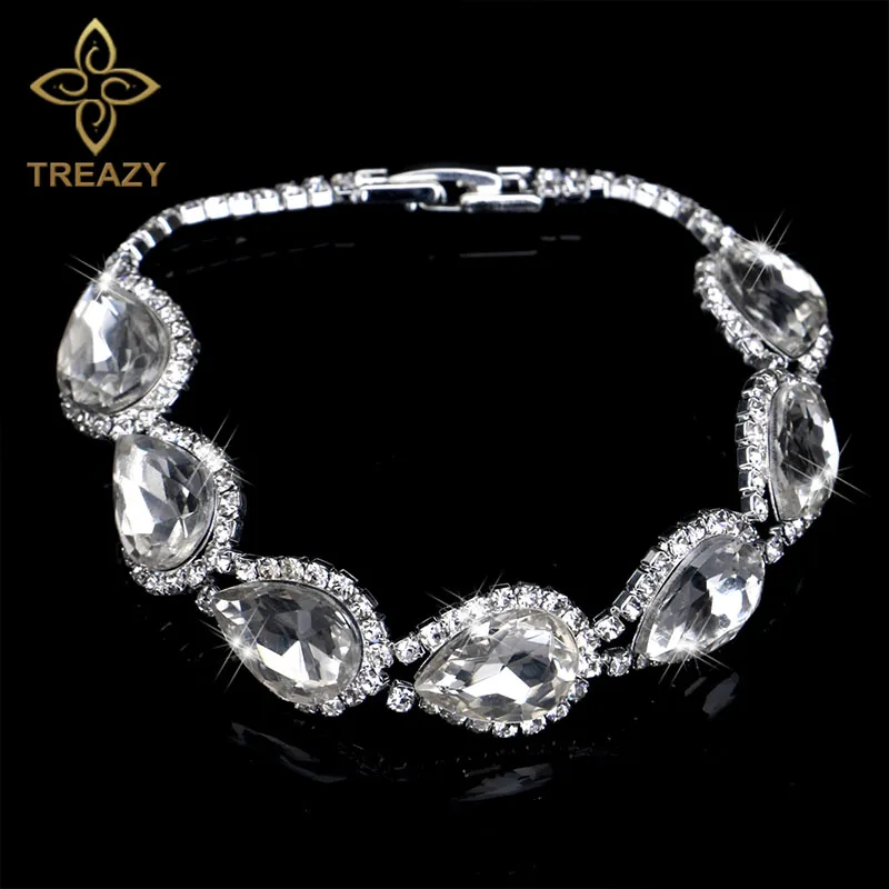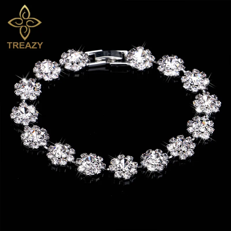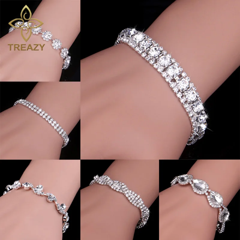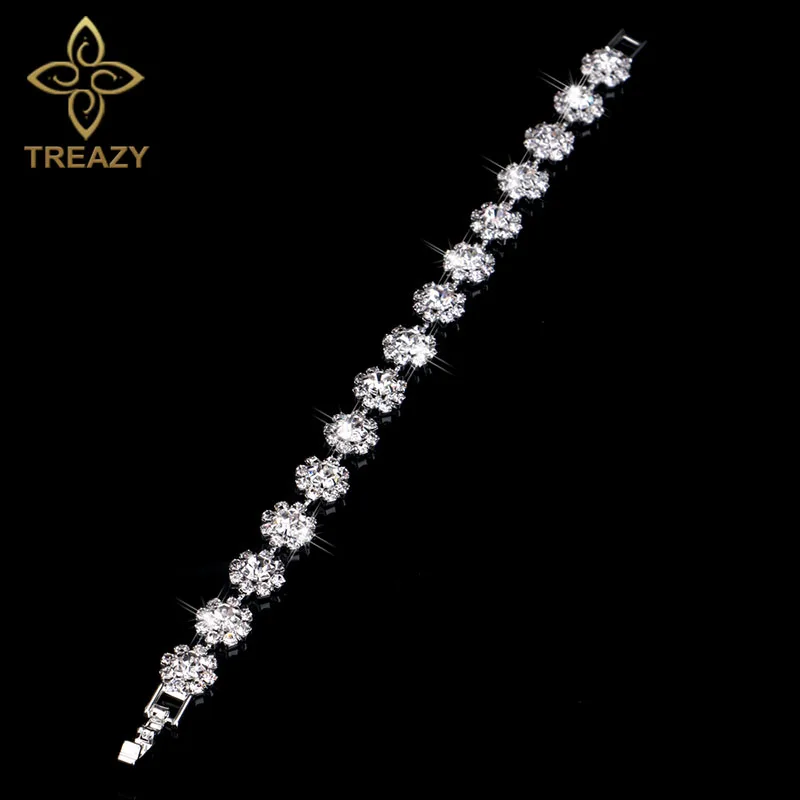 Promo TREAZY New Luxury Rhinestone Crystal Bracelets & Bangles for Women Silver Plated Bridal Bracelets W