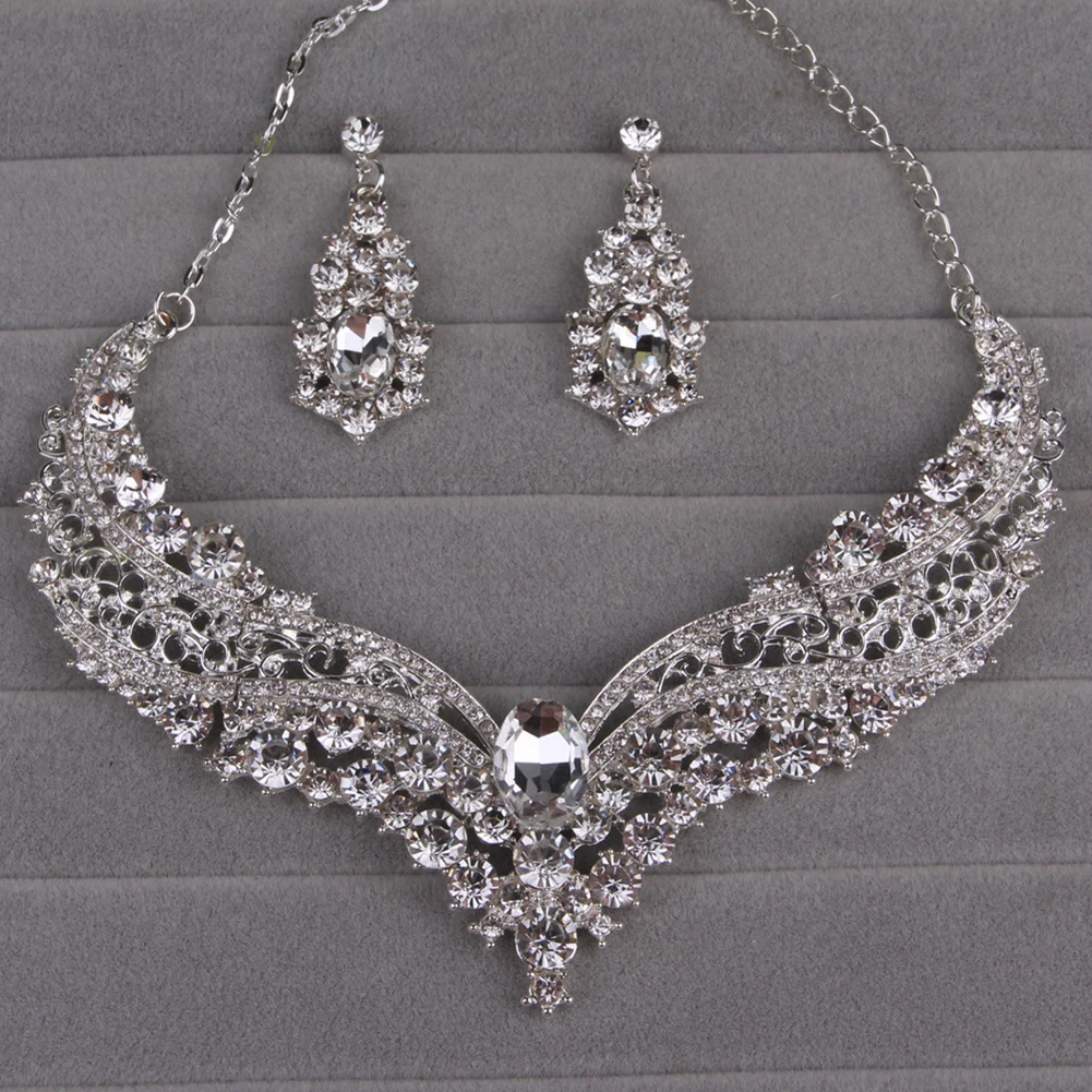 Promo Wedding Bridal Queen Style Fully Shiny Rhinestone Necklace Earrings Jewelry Set