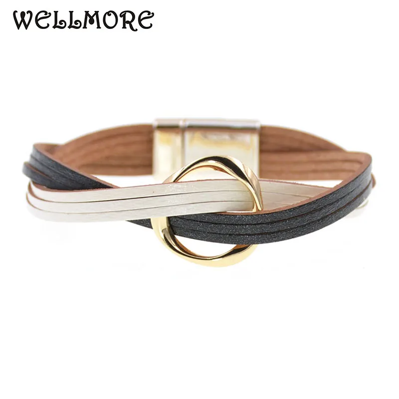 Best WELLMORE 18 Colors charm Leather Bracelets For Women & Men Multiple Layers wrap Bracelets Couple gi